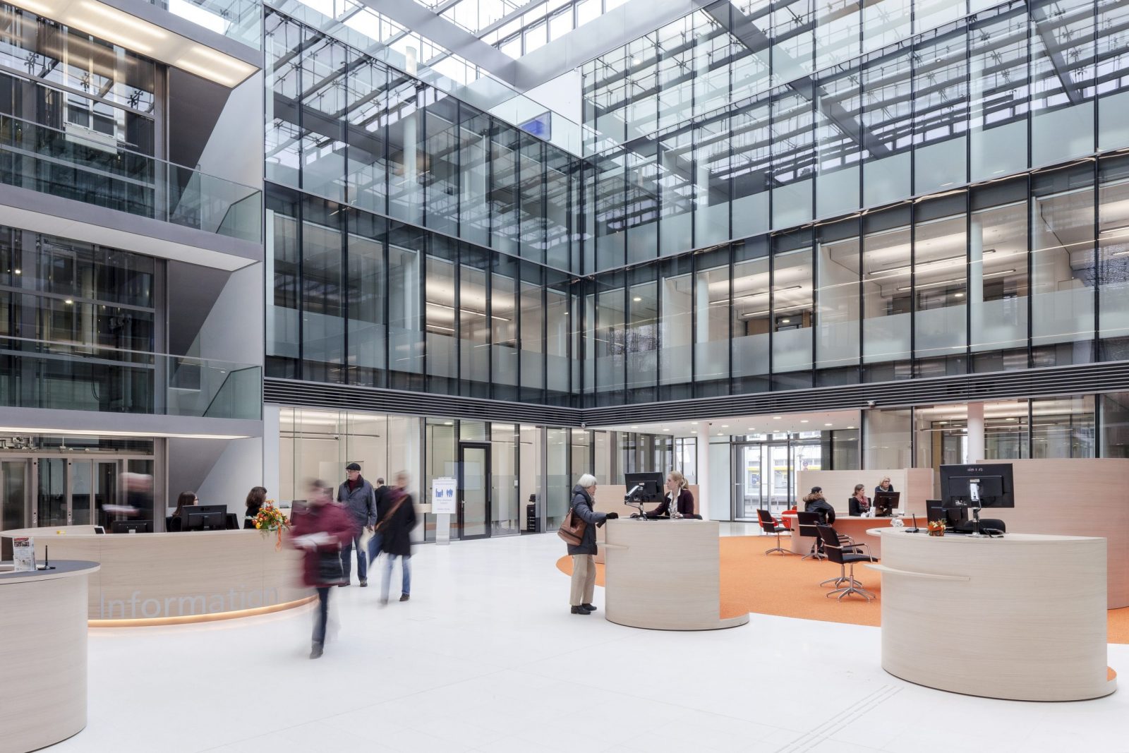 LEGNO fertigt einen Großteil des Innenausbaus der neuen Krefelder Volksbank Zentrale am Dionysiusplatz. Die Dortmunder Gerber Architekten entwerfen das moderne Bankgebäude.