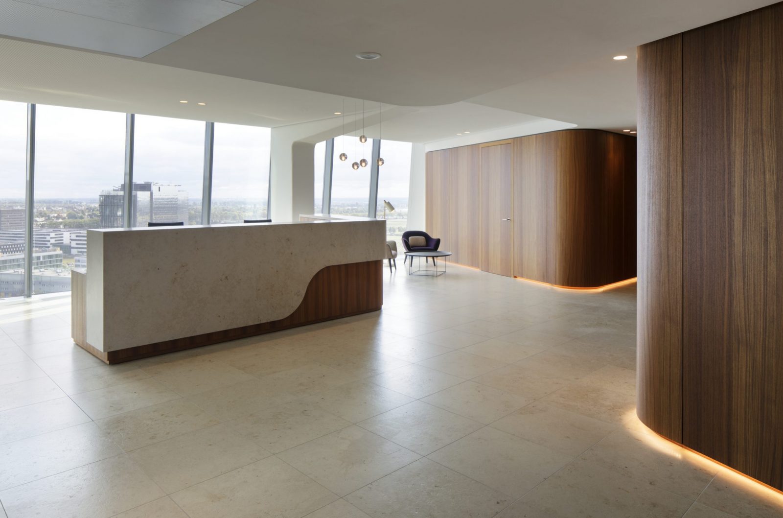 LEGNO hat für die West LB in Düsseldorf einen exklusiven Vorstandsbereich realisiert. In feinster Ausführung wurden Empfang, Wartebereich, Sideboards, Konferenzraum, Sondertürelemente, Lounge, Wandverkleidungen und Schränke geschaffen.